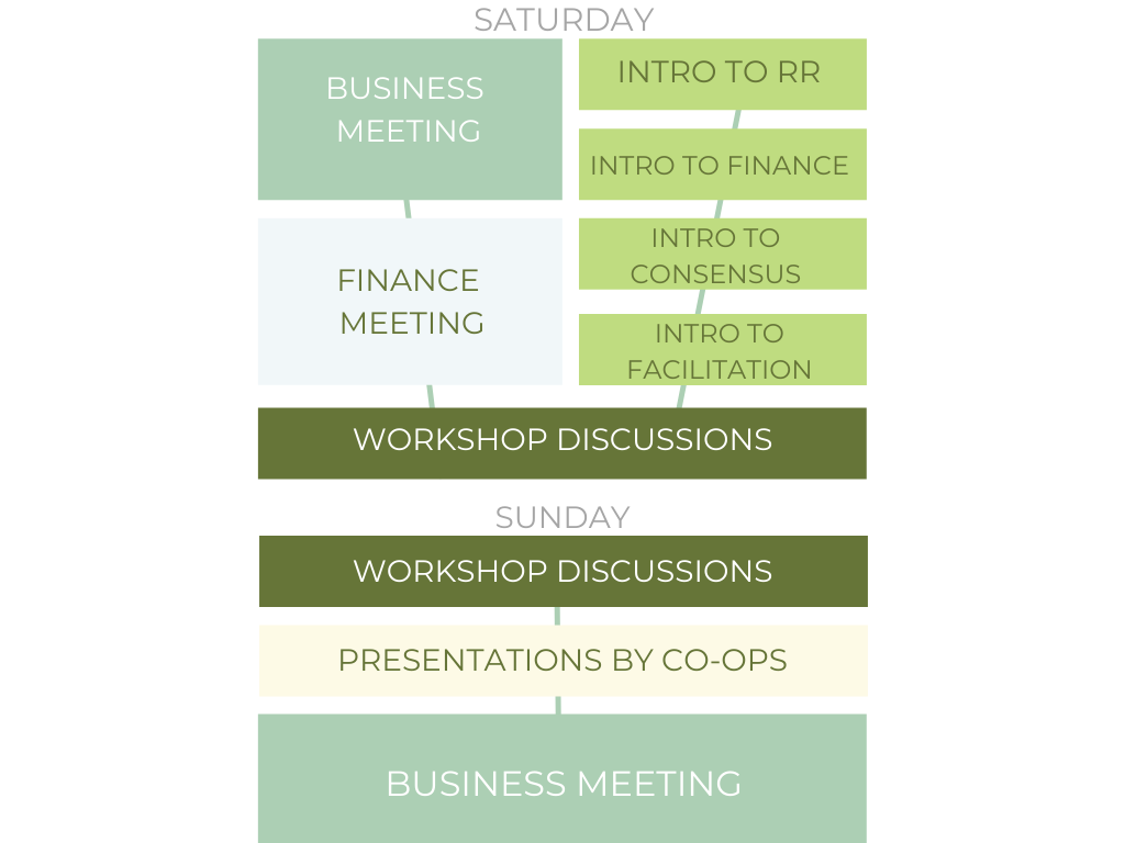 - Work carried out by member co-ops is reported, and the next quarter’s work is shared out around the network.